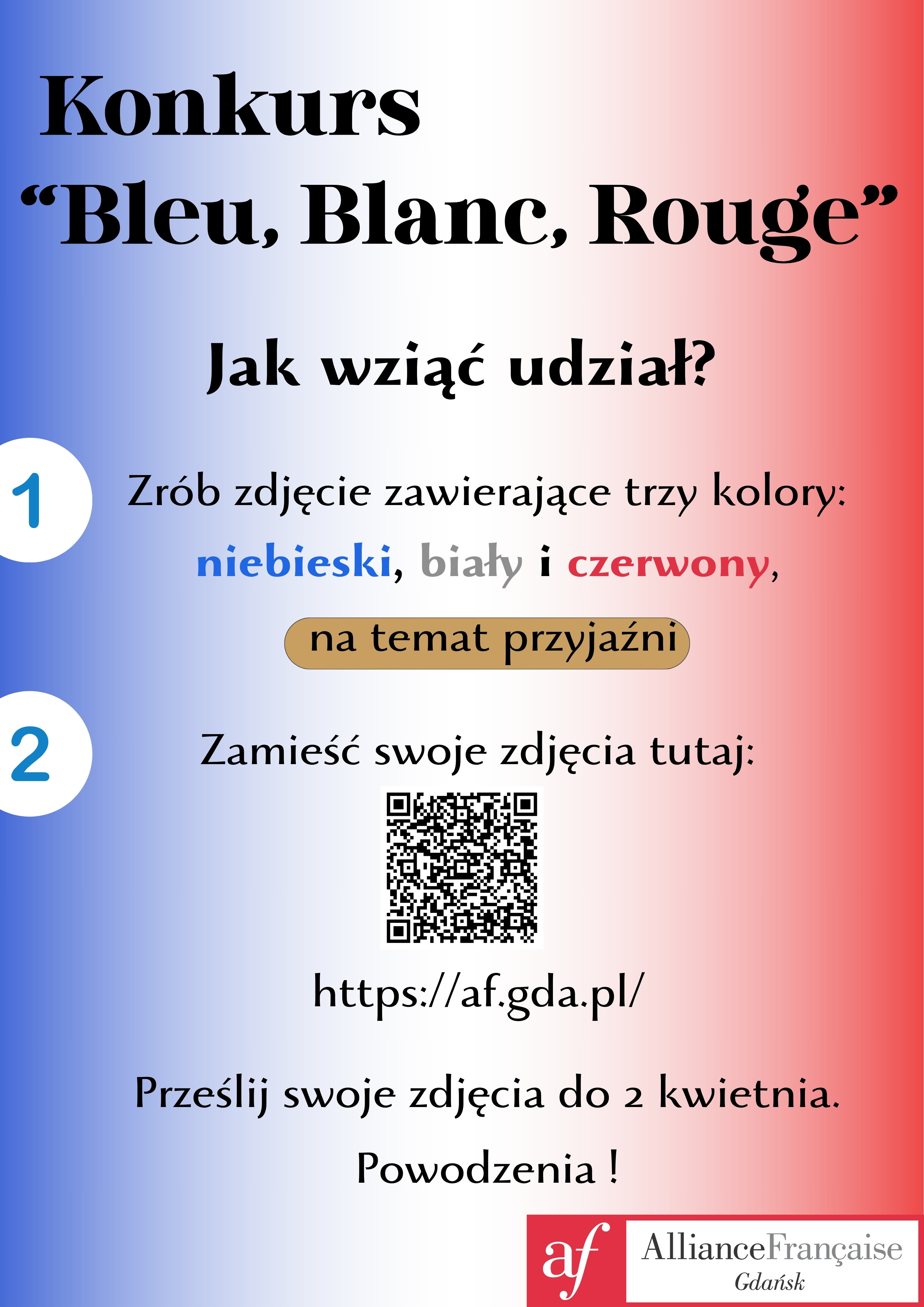 Alliance Française de Gdańsk oraz II Liceum Ogólnokształcące w Gdyni organizują nową edycję konkursu „Bleu Blanc Rouge”!