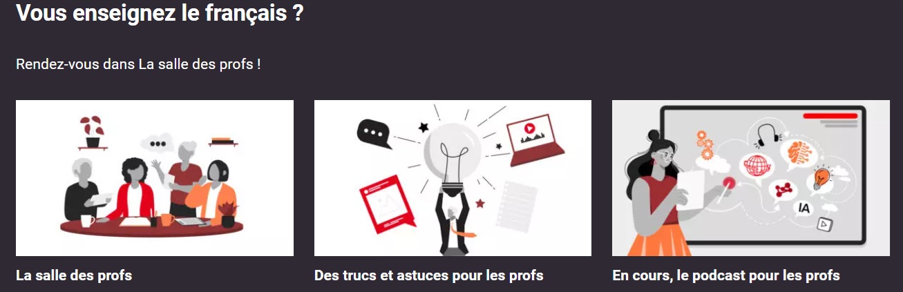 Un espace pour les enseignants : des fiches pédagogiques prêtes à l'emploi, des dossiers, des outils et des informations pour travailler avec la radio en classe de français.